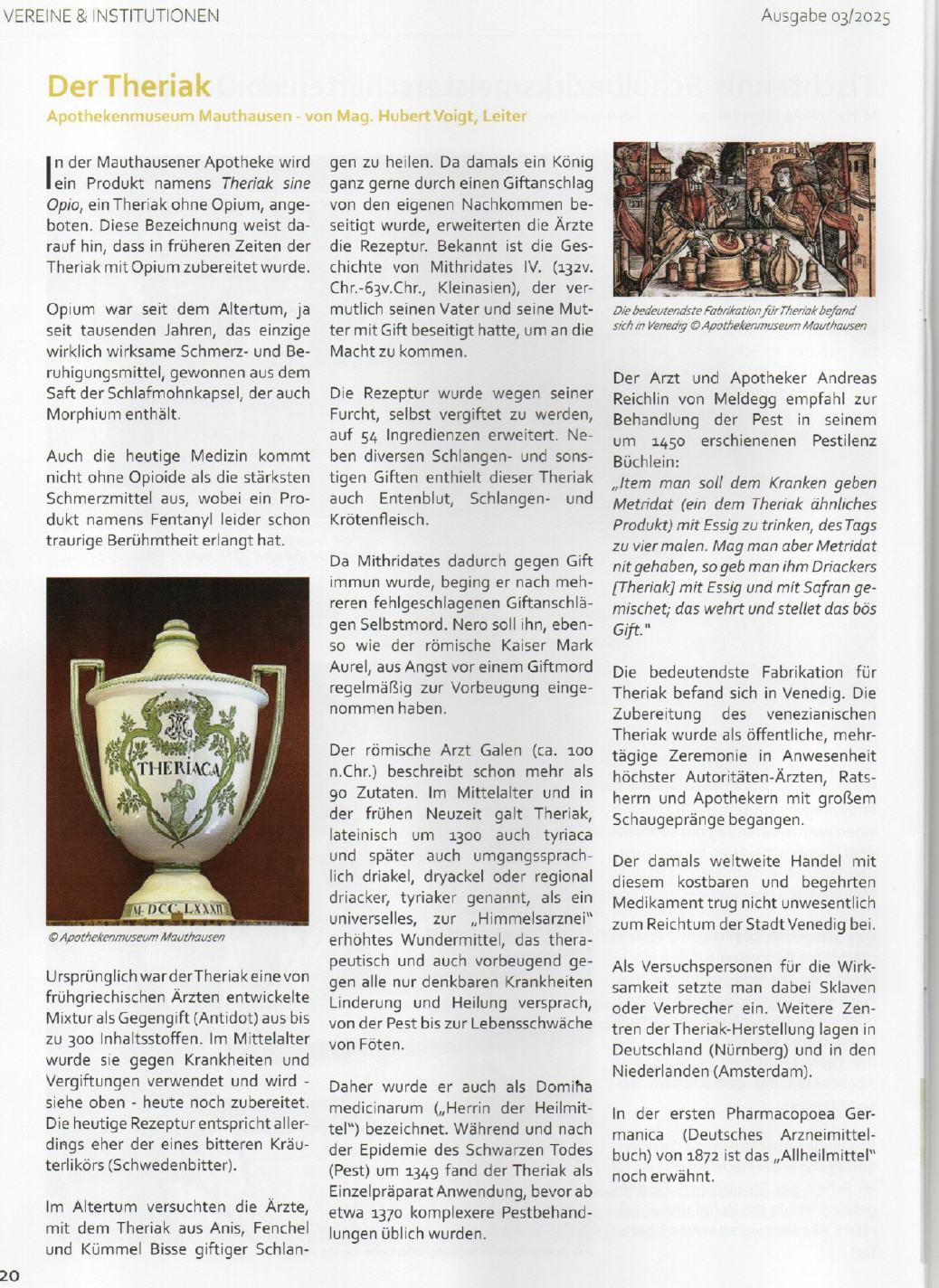 Mag. Norbert Aichberger ist auch ObmStv des Heimat- und Museumsvereines und wird als Leiter und Kurator des Apothekenmuseums von seinen Nachfolgern und Besitzern der „Mariahilf Apotheke Mauthausen“, seinem Sohn Mag. Michael und Schwiegertochter Mag. Monika Aichberger unterstützt!