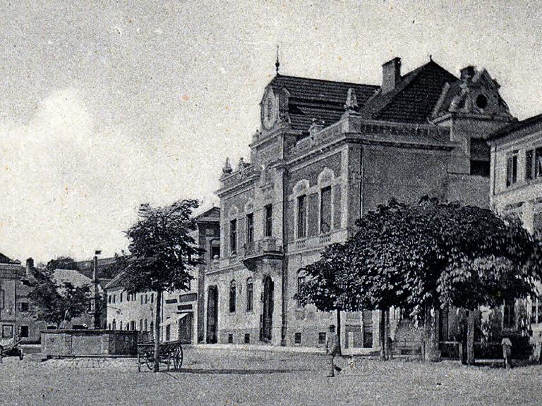 L’edificio che domina la piazza del mercato venne eretto nel 1901 come palazzo della cassa di risparmio e dotato di uffici amministrativi comunali. In seguito al trasferimento della cassa di risparmio, la struttura venne riadattata come ufficio comunale.