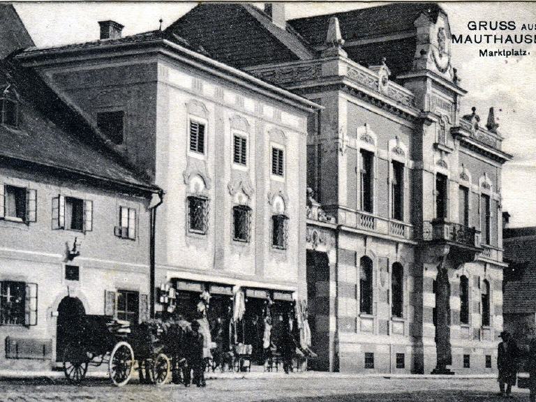 On the left of the building can be seen the old coat of arms of the former ‘market by royal privilege’ with ducal hat and the red-and-white striped shield of Austria. To the right there was once a stone tablet on which was recorded the act of three courageous citizens of Mauthausen who on 28 May 1809 prevented Saxon troops serving in Napoleon’s army from setting the town on fire.
