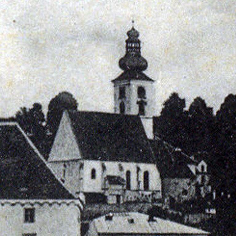 La prima chiesa romanica del periodo intorno al 1200 venne distrutta nel 1424 durante le crociate hussite e ricostruita nella metà del XV secolo in stile tardogotico.